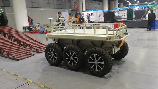 6×6純電動全地形車采用功率型鋰電池,外轉(zhuǎn)子電機(jī)直驅(qū),搭載無人通信平臺,電子差速轉(zhuǎn)向。